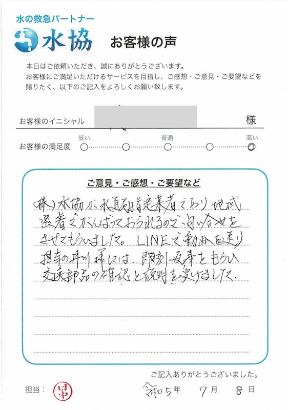 水協では地域密着でお客様に喜んでもらう為、保証期間はもちろんアフターフォローも万全に対応させていただいております。また何かお困りの際には、ぜひ声掛けくださいませ!