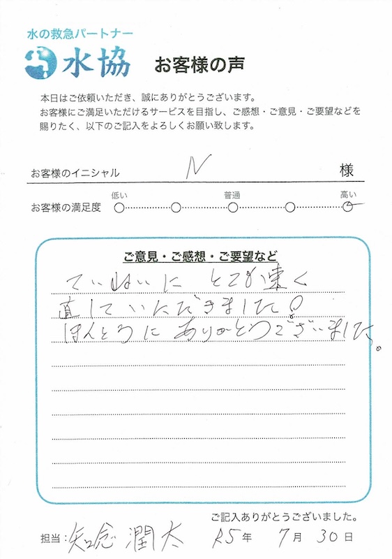突然のキッチンの水漏れでお困りのところ、迅速に対応できお役に立ててよかったです。