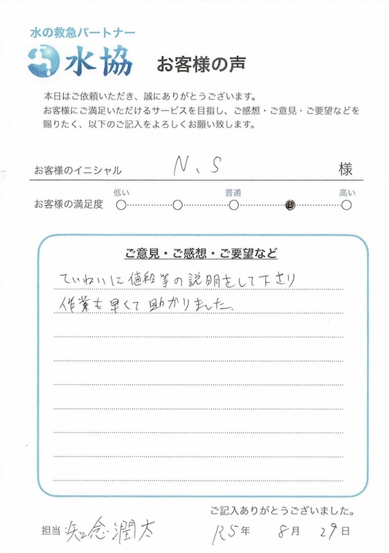 水協では事前の説明やお見積もりの提示を徹底し、お客様に安心してご依頼いただけるよう務めております。また何かお困りの際にはいつでもお気軽にお声掛けいただければ幸いです。
