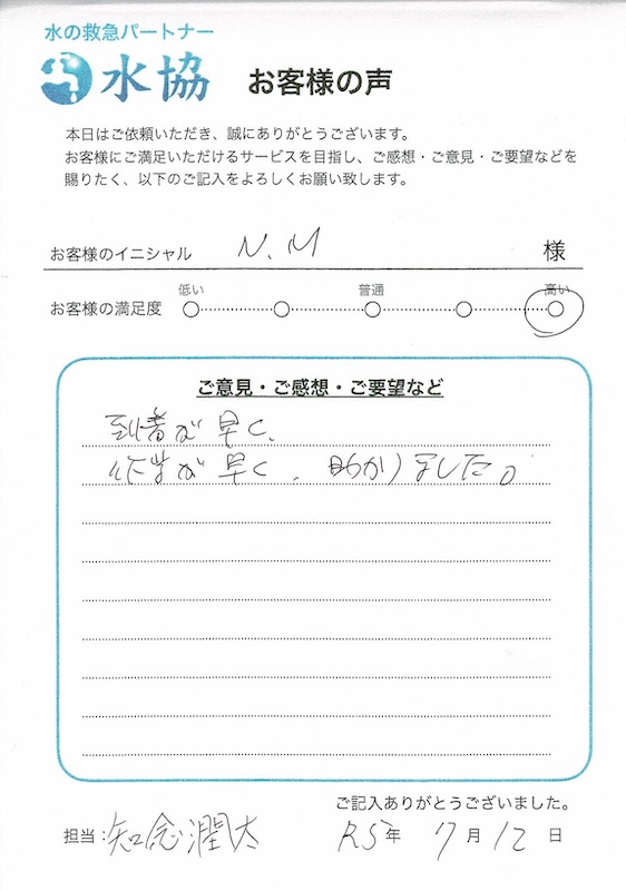 トイレのトラブルでお困りのところ、連絡をいただいてから迅速に到着でき、お役に立てて何よりでした。