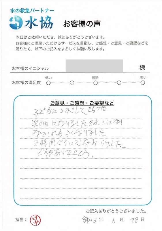 水協では水のトラブルに24時間年中無休で最寄りの拠点から駆けつけております。また何かございましたらいつでもお声掛けくださいませ!