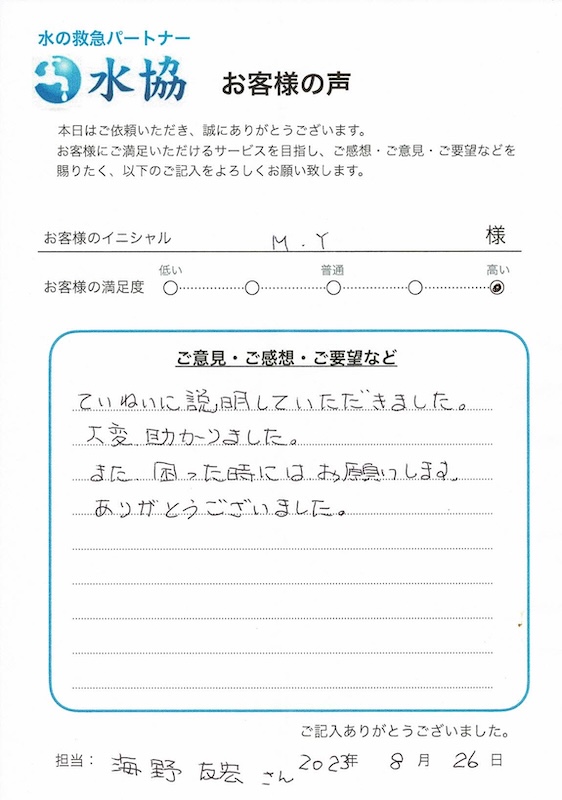 水協では修理技術はもちろん、接客やマナーなどの研修も受けた専属のスタッフがお伺いいたしますので、また何かございましたらいつでも安心してお声掛けくださいませ!